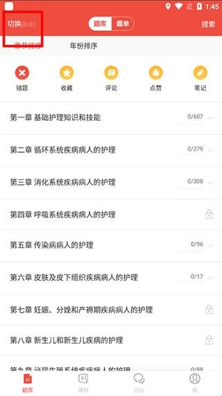 3、在题库界面的右上方点击切换;
