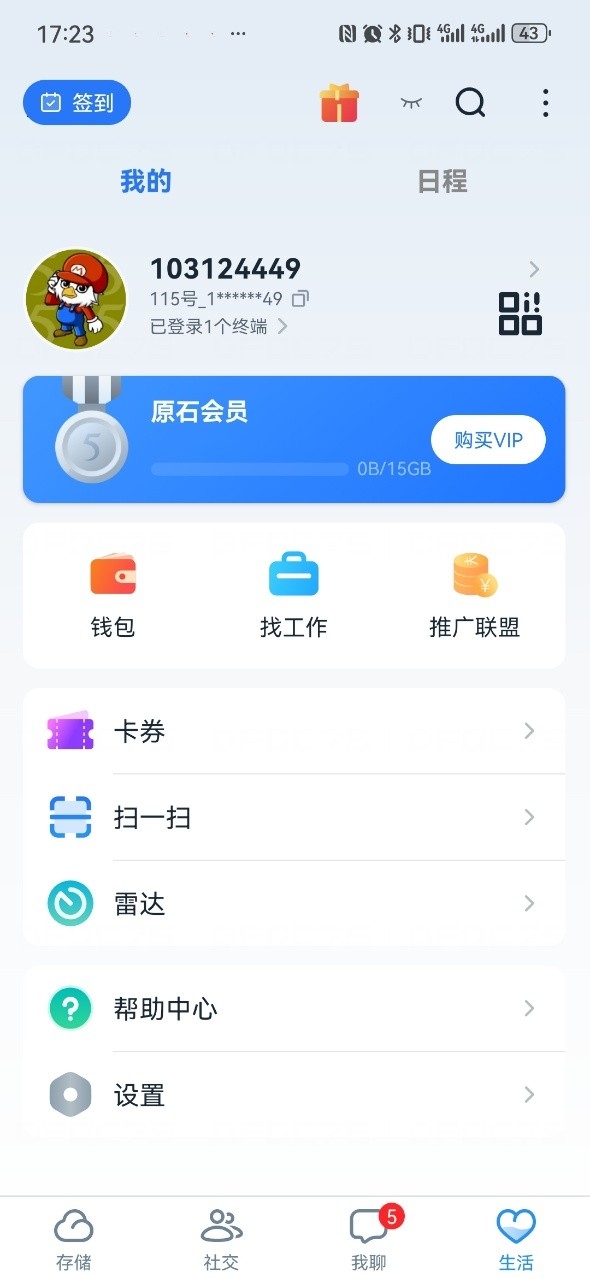 1、在本站下载好115生活后,用户登录应用后进入到存储页面下点击上方的文件图标。