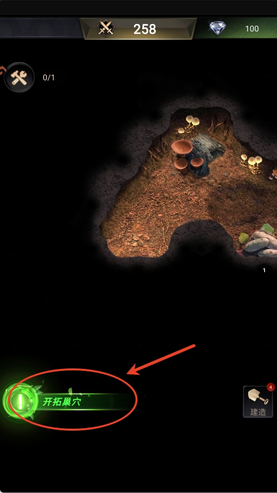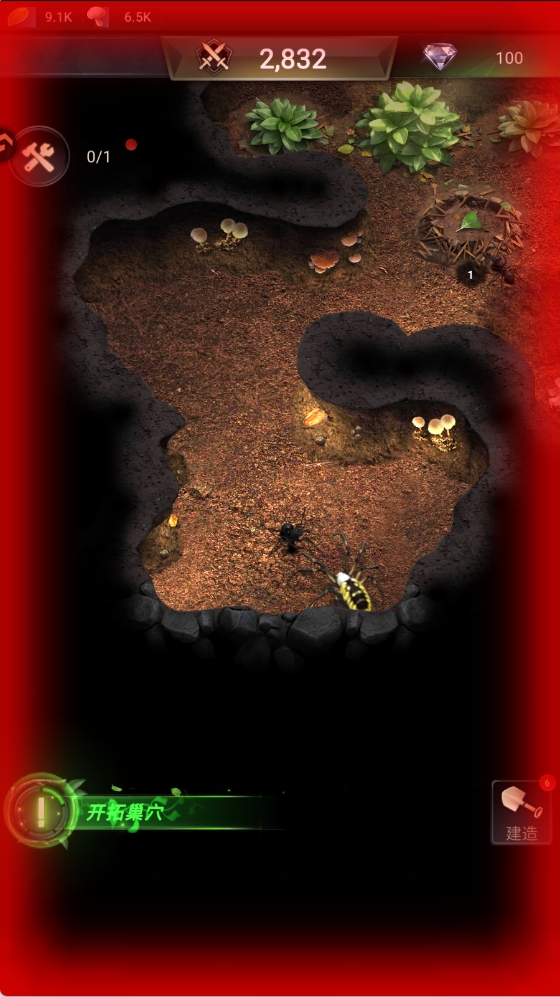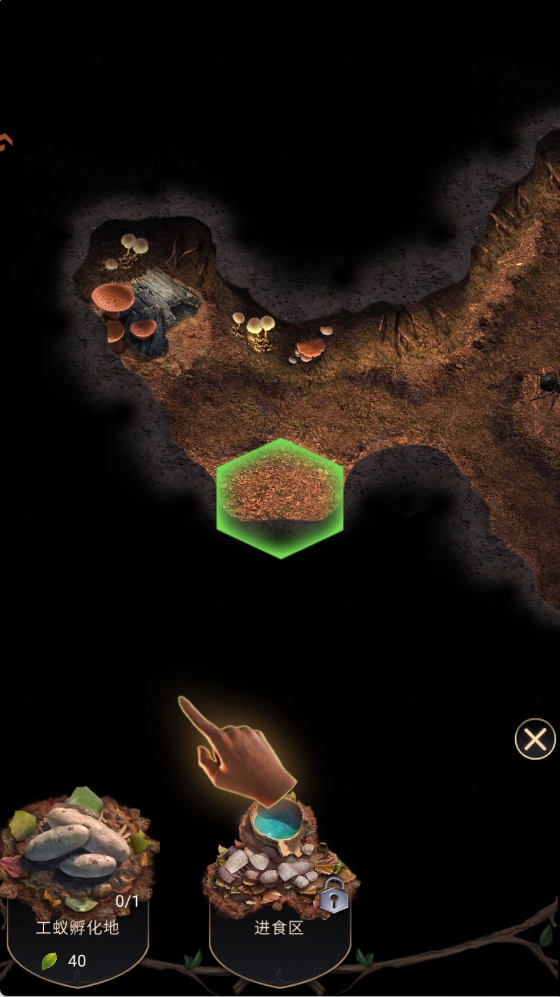 3、游戏内点击指示的墙壁让蚂蚁进行开拓空间。