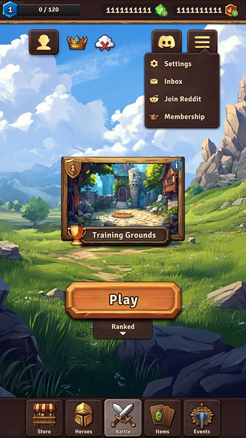 1、在本站下载好背包乱斗后,首先需要将语言调整至中文,点击右上角的菜单选择第一个设置。