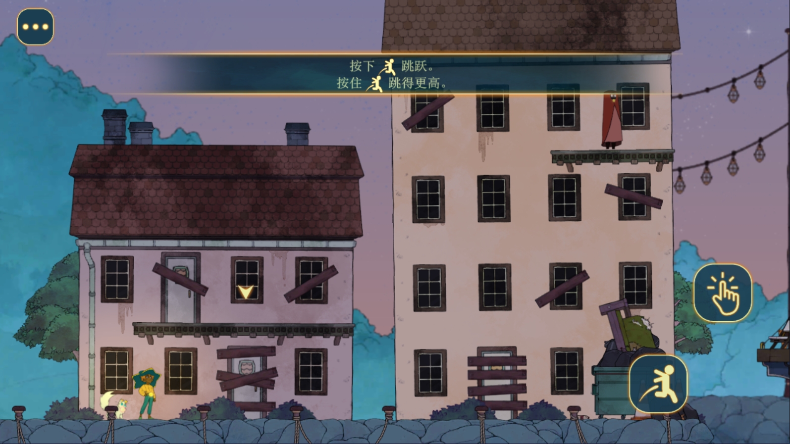 2、按下跳跃图标跳一下,按住跳跃图标跳的更高。