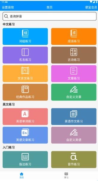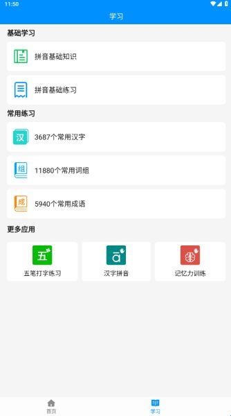 1、在本站下载好拼音打字练习并进入应用首页,选择你需要联系的类型。