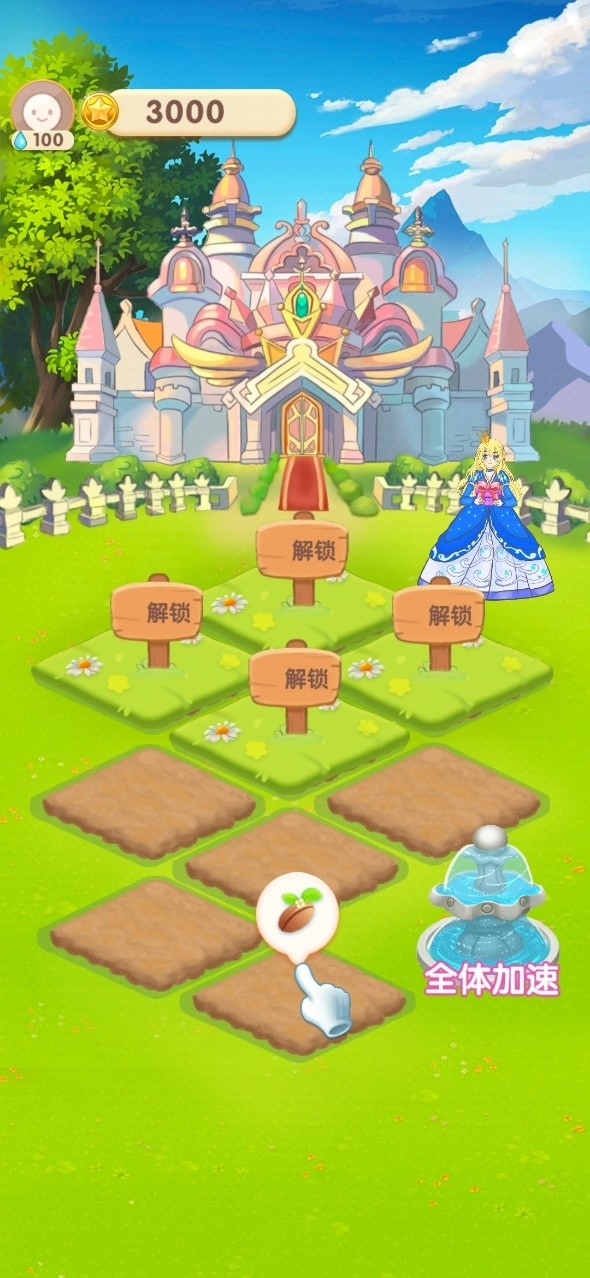 3、点击土地,可以种下花朵,种植途中点击土地还可加速获取。