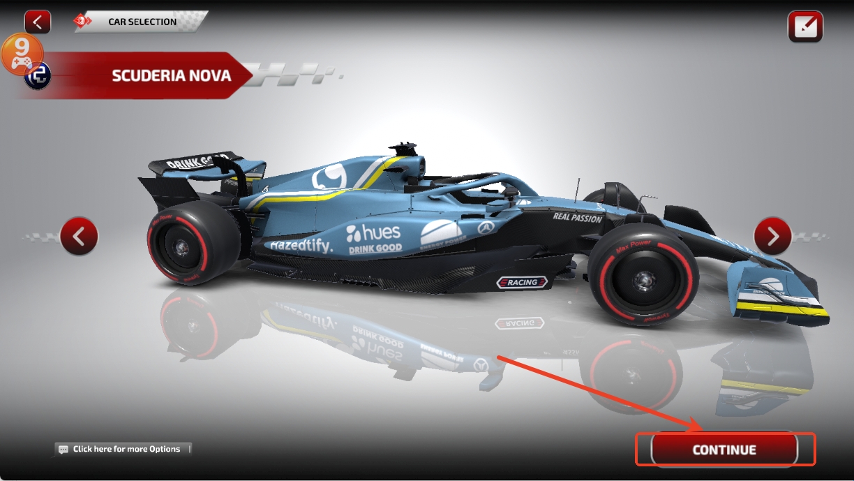 2、选自己喜欢的车辆,再点击CONTINUE。