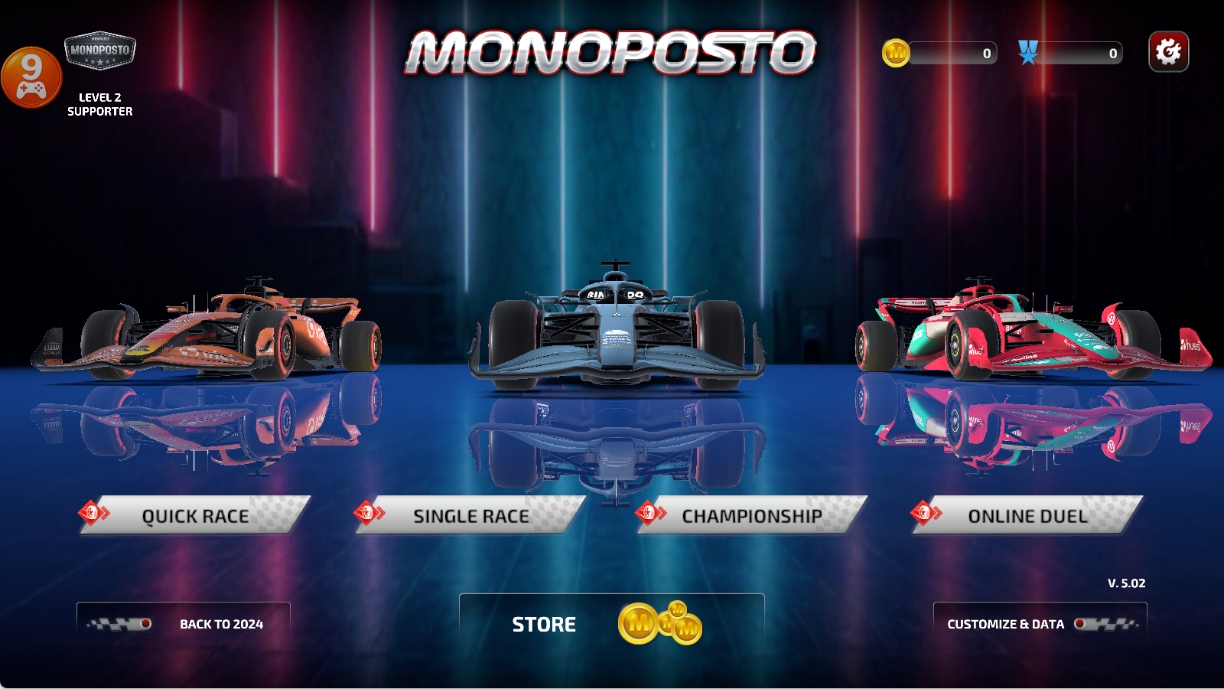 F1方程式赛车是一款非常刺激的赛车竞速游戏,游戏中有着各式各样的玩法模式供玩家选择,如快速比赛、单一挑战赛、锦标赛、在线决斗等,能够满足玩家不同的喜好需求,为游戏添加了不少的乐趣,游戏内还有着不同风格的赛车供玩家自由使用,每种赛车都有真不一样的颜色设计,给玩家带来多样化的竞速体验。