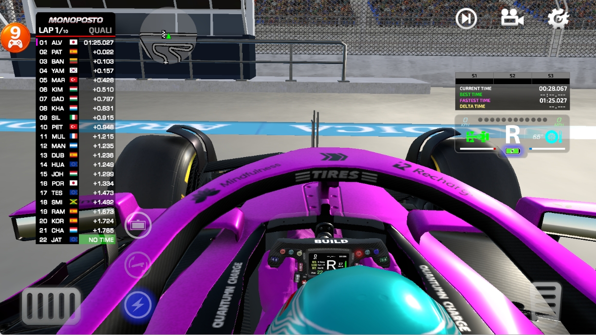 1、在本站下载好F1方程式赛车后并打开,在主页面有着快速比赛、单一挑战赛、锦标赛、在线决斗等4种玩法模式供其选择,点击QUICK RACE。