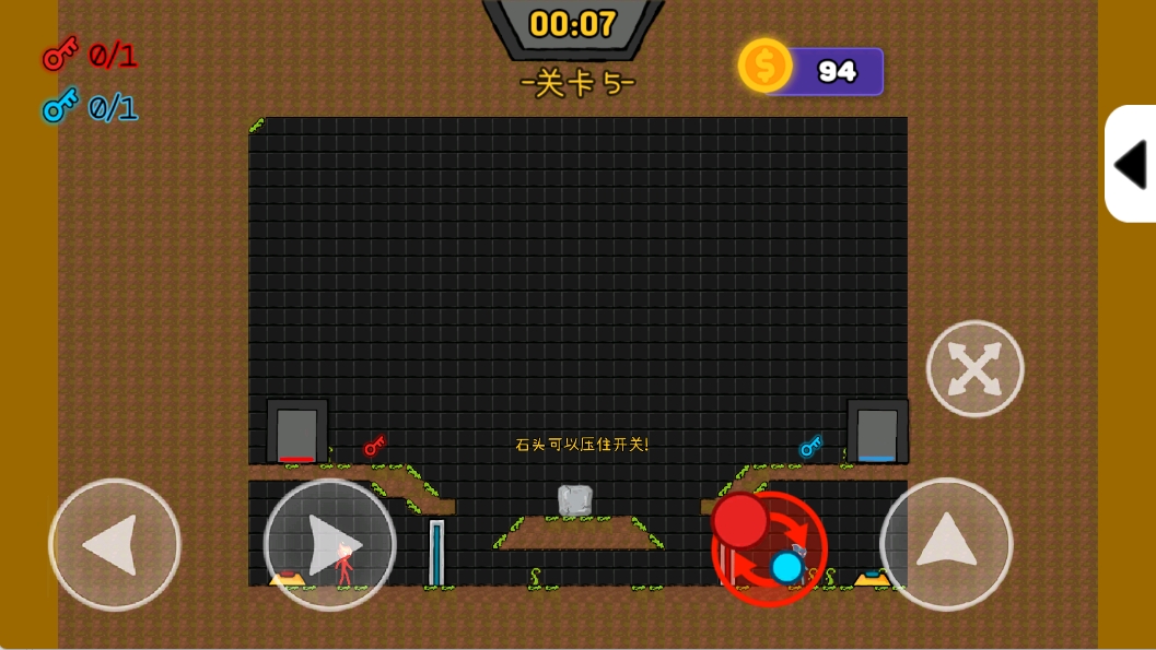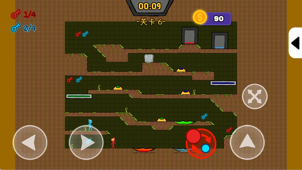 4、红色的水池只有火人能通过,蓝色的是只有冰人才能通过。