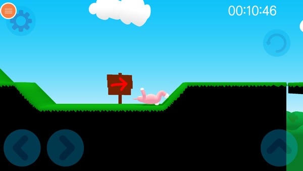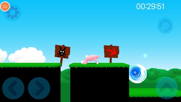 3、正式进入关卡挑战,先来熟悉一下按键操作,左侧按钮可以控制兔子人移动,右侧则是跳跃按钮,右侧上方则是重置键;