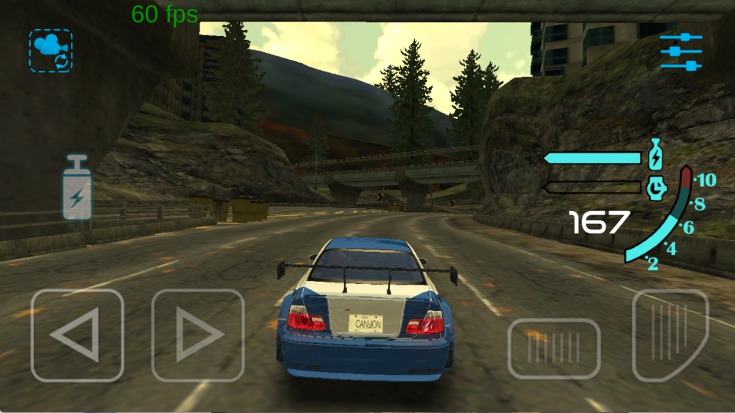 4、点击右上角菜单可以切换为另一种操控模式,如图,左下角按键控制车的方向,右下角左边刹车,右边加速。