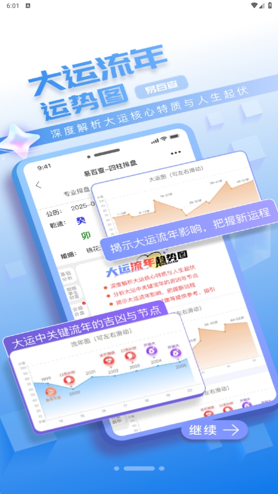 易百查是一款免费为用户提供排盘的工具软件,在软件内有着四柱、紫薇、奇门、六爻、梅花、六壬等多种分类和分区,让用户能够每日查询能量分值,收获关于财富、心情、恋爱情感、健康、事业学业的分析建议,还有着易经方面的老师为你一对一解答专业知识教学,帮助用户更为方便地去进行相关知识教学功能的查看,非常欢迎感兴趣的用户前来下载体验。
