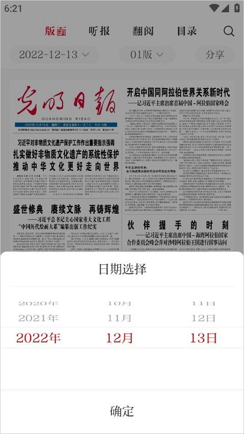 2、在顶部的“版面”可以选择时间,相较于普通纸质版的报纸阅读,延续传统报纸版面排版的电子版,不宜丢失。其次,通过翻阅可以转页,点击即可将版面放大。