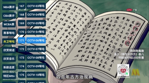 2、打开侧栏可以看到频道分类非常全面,点击想看的频道即可进行切换。