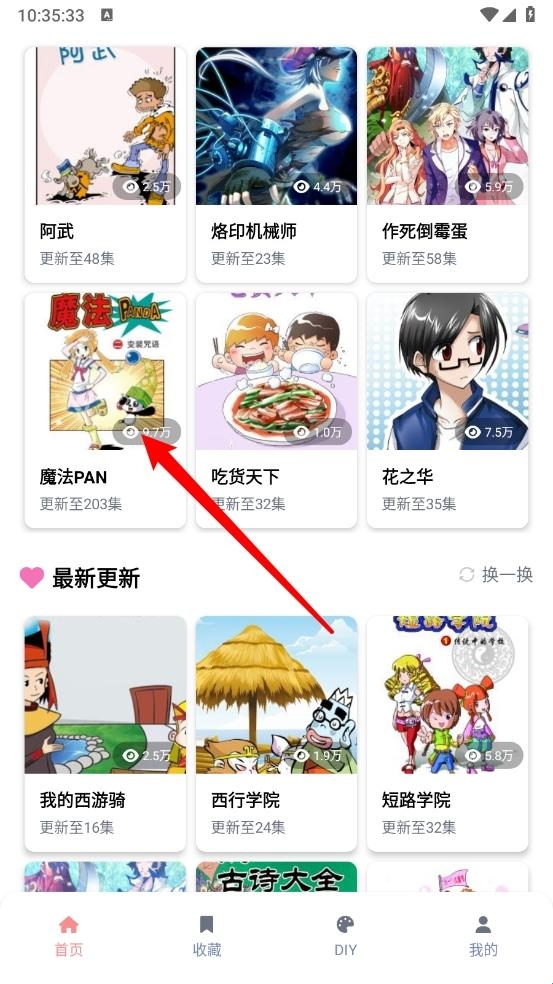 1、打开漫天星动漫app,在首页选择喜欢的漫画。