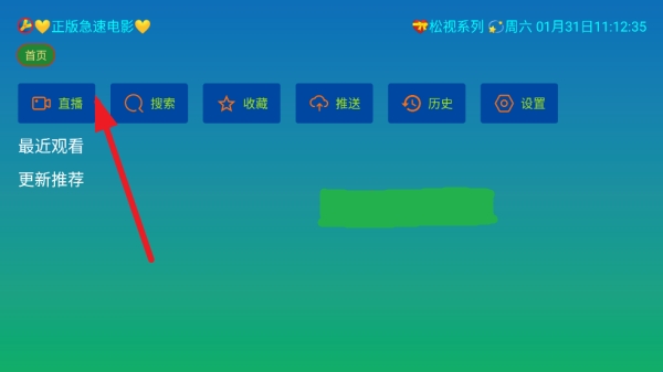 4、首页点击“直播”就可以观看电视节目频道啦。