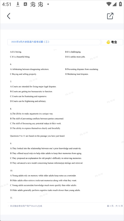 5、最后,按照顺序或随机练习题目,保持耐心和专注,坚持刷题,就能有效提升六级成绩。