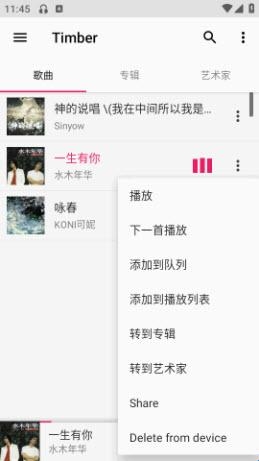 Timber音乐(Timber)是一款支持免费在线听歌和下载歌曲的软件。软件为用户提供无广的流畅听歌体验,还有多个搜索源可以选择,不同的音源文件都可以找到,并且支持无损音质下载,满足各类音乐爱好者的需求,喜欢的用户快来下载进入属于你的音乐世界吧。