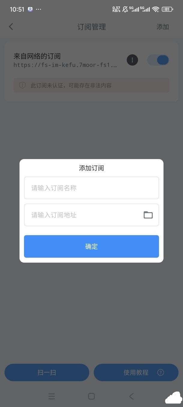 3、输入新的订阅源点击确认。