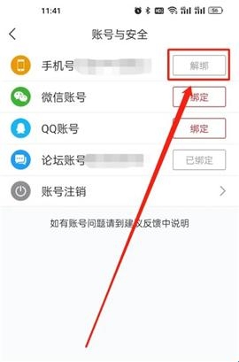 3、打开账号与安全,点击解绑,就可以解绑手机号了。