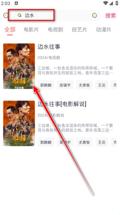 2、在首页上方的搜索框输入我们想要看的剧,接着点击我们喜欢的剧。