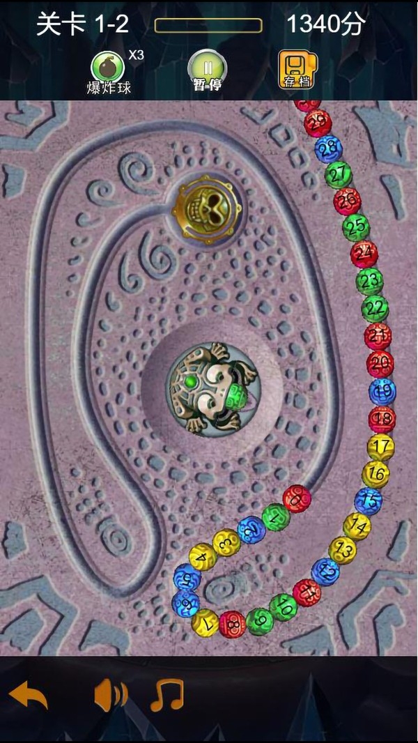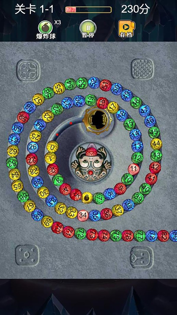 2.关卡多样:有大量具有挑战性的关卡。每个级别都有不同的布局和难度。玩家需要运用自己的策略和技巧,合理安排发射石球的顺序,以最快的速度消除所有石子球