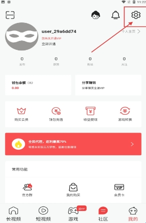 1、进入【我的】页面,若要设置提现信息,可点击右上角【设置】图标,进入设置界面。