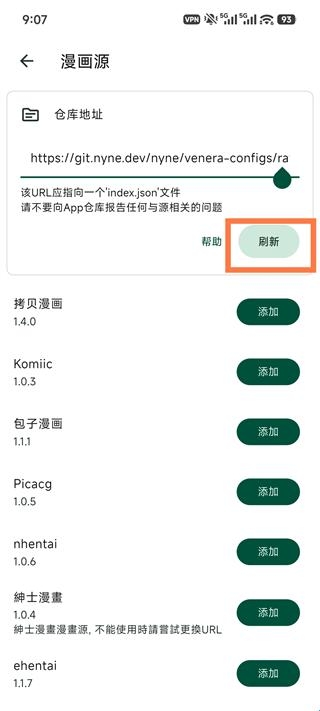 3、刷新之后添加所有漫画源