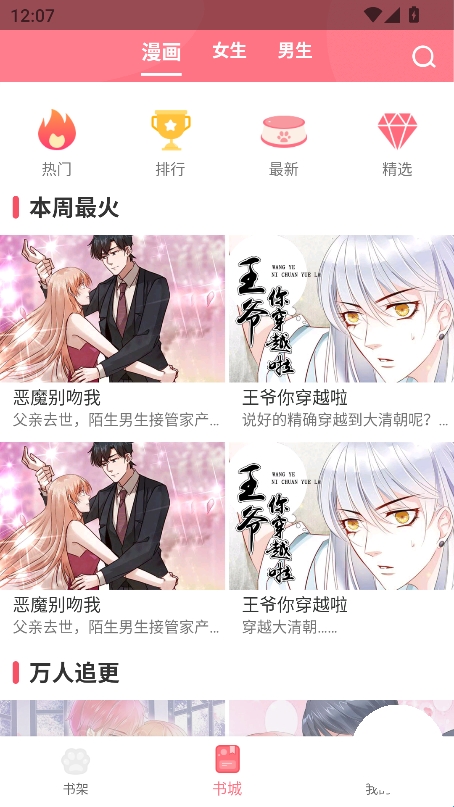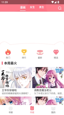 3、可以自由切换顶部的男生和女生选项,进入对应分区查看漫画。