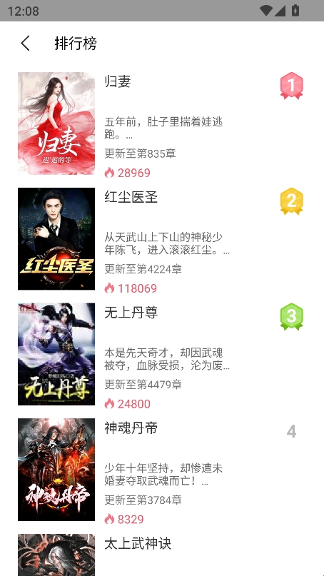 5、在排行中可以查看近期热门作品。