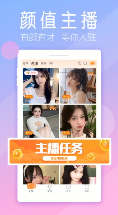 6、丰富的社交功能,用户可以关注主播、加入粉丝团,建立社交圈,支持私信聊天和动态分享。