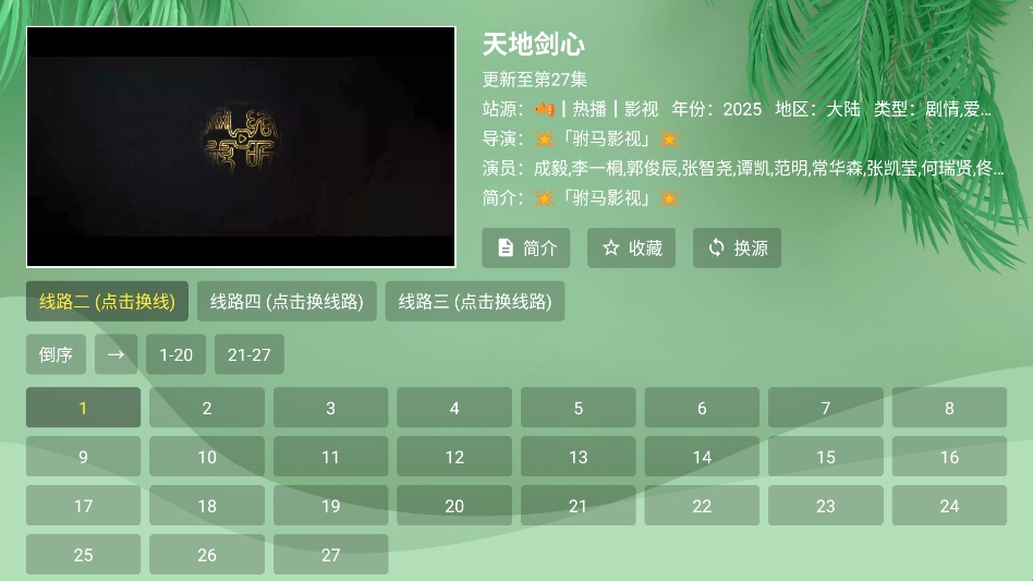 6、进入播放页面可以自由切换播放路线,也可以收藏。