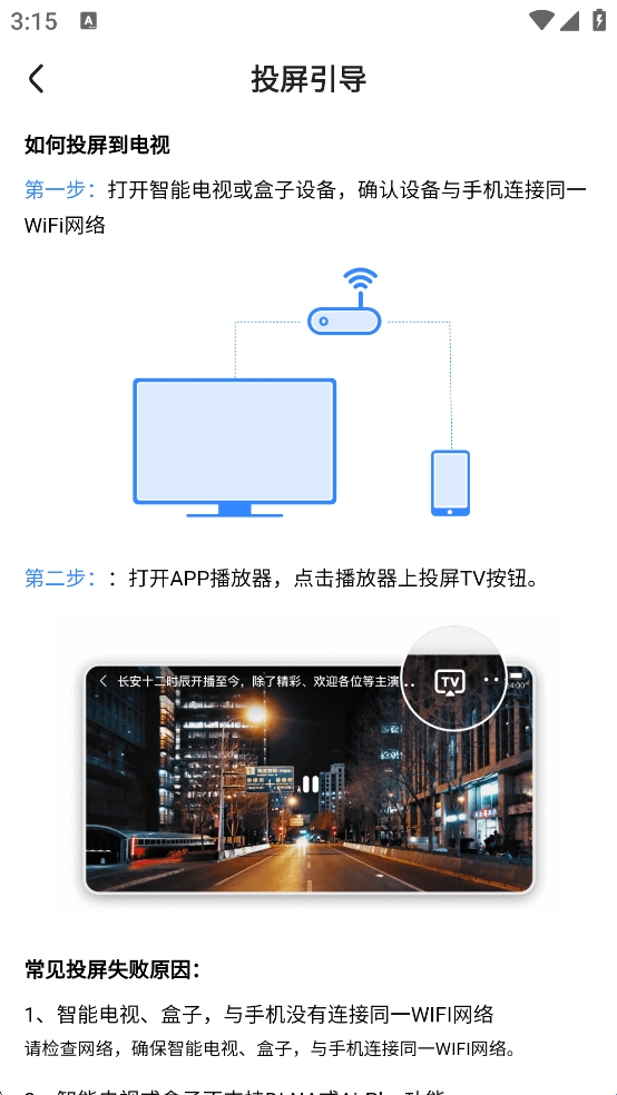 3、确保手机和投屏设备处于同一网络环境下,搜索到设备之后就可以投屏观看了