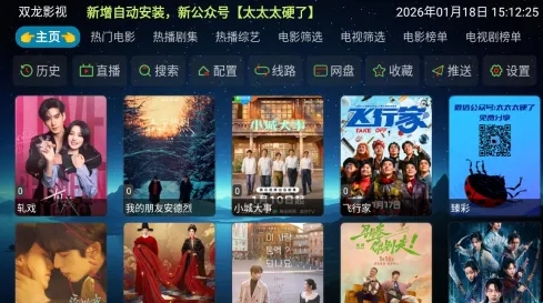 双龙影视是一款不用登录、不用注册就能直接追剧看电影的APP,使用前需要输入配置地址就能正常播放。里面有最新电视剧、刚上映的院线大片、经典老电影还有动漫,各种影视资源很全,能满足不同人的观影喜好,国内外热门影视都能及时看到。有需要的朋友赶紧下载体验吧!