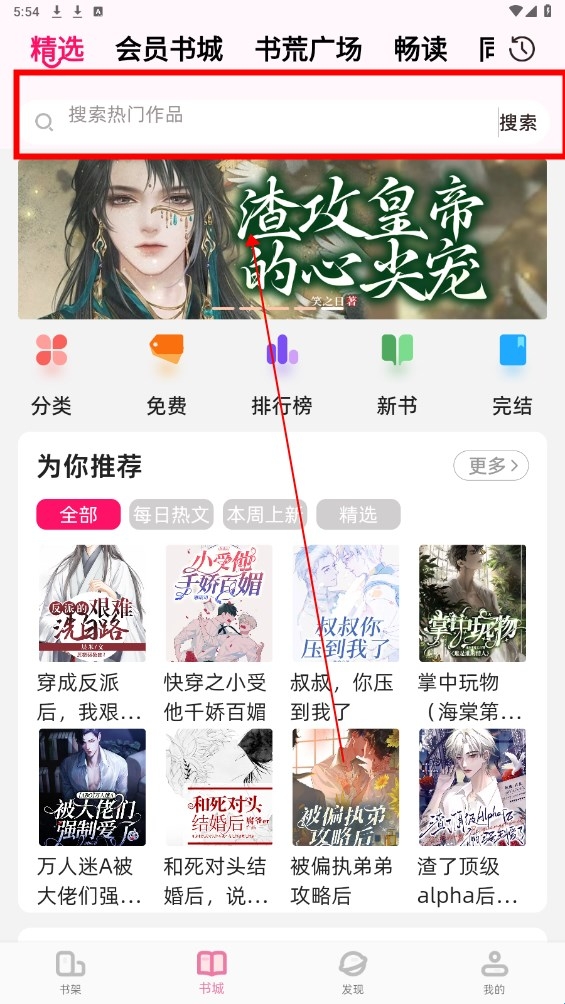 2、在搜索栏中输入你想看的书名或关键词,然后点击搜索按钮。