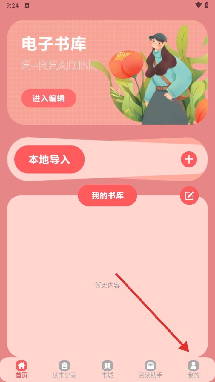 1、打开软件后进入主页,可以将本地书籍导入并开启丝滑的阅读体验。