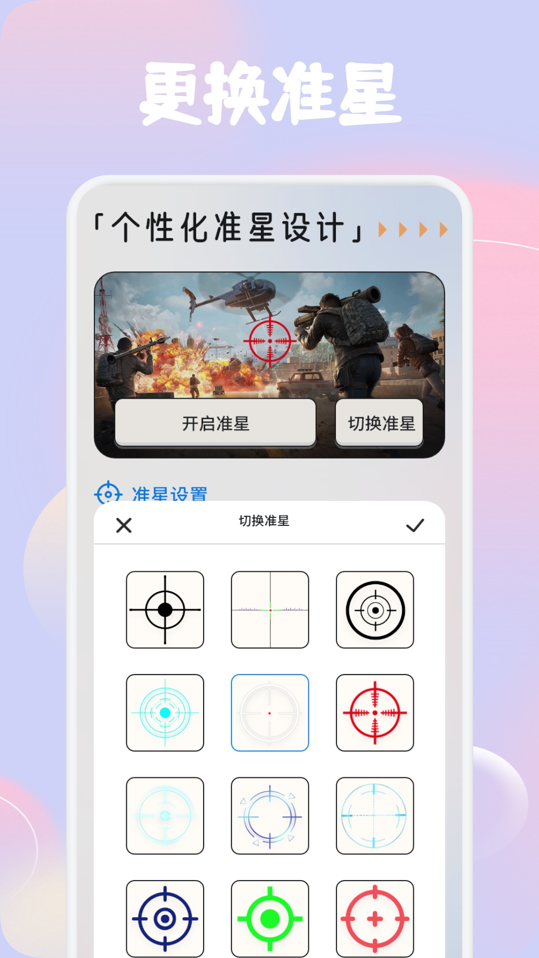 2、内置快速切换功能,在游戏过程中可以即时更换准心样式,应对各种战斗场景;