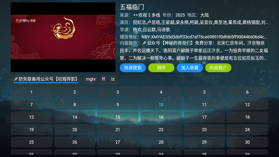 1、接着任意选择一部喜欢的剧集播放,这里以“五福临门”为例。