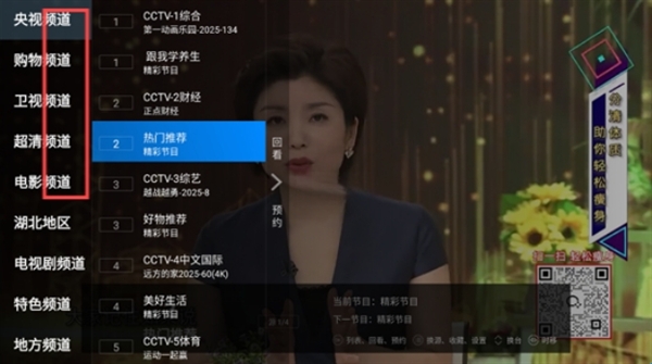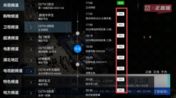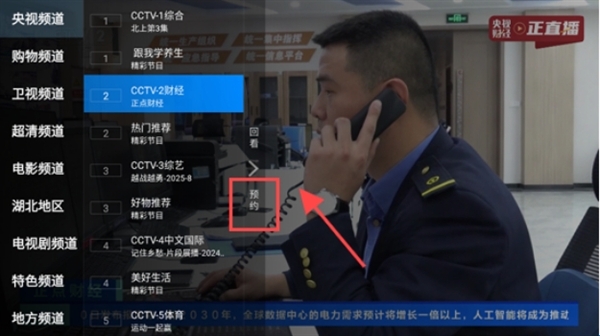 2、在对应的频道界面会有很多的频道选择,会有回看和预约选项。
