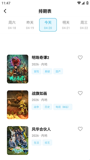 4、点击排期表选项可以查看今日更新内容。