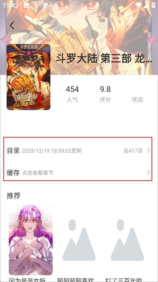 3、你可以在这里看漫画,也能缓存漫画,让你离线也能看漫画;