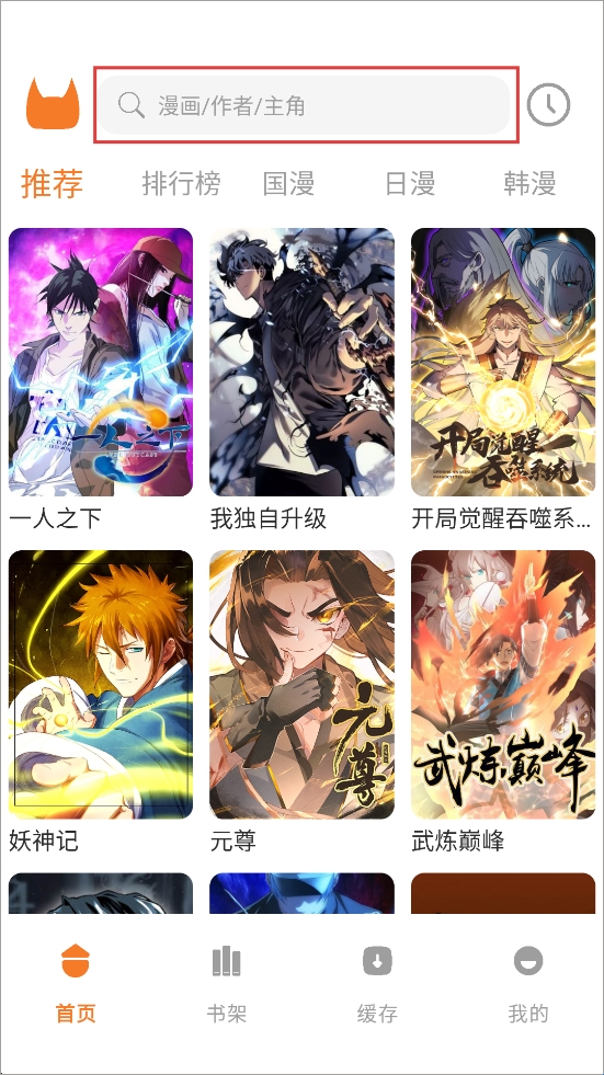 1、在本站下载安装app,如果你有想看的漫画并且知道名字或者漫画作者、主角,你就可以点击上方搜索栏;