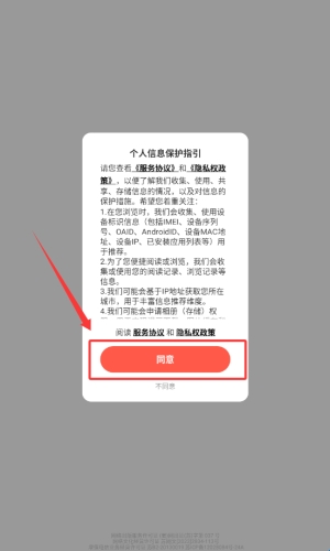 1、在隐私页,点击被框选的红色同意按钮。