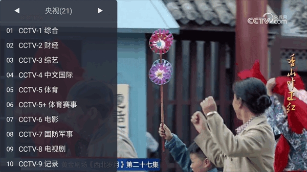 2、点击屏幕的左边,就会弹出频道选择功能,比如央视专区,cctv1-cct21全部都有