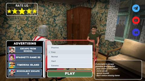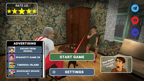 逃离家暴2(SchoolboyEscape2)是一款题材很新颖的第一人称逃脱类游戏。游戏的画风很真实,主角是一个被送到外祖父家的少年,玩家需要操控少年解锁更多的隐藏地点,直至成功逃离这个偏远山村,需要注意的是,在逃跑时千万不要被家长发现哦。