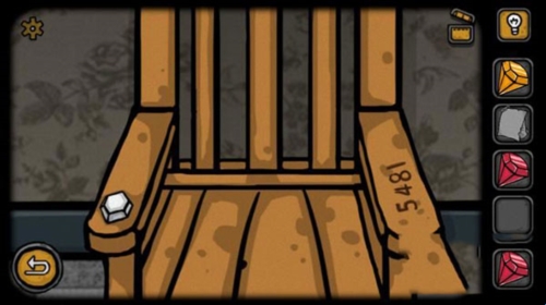 6、下面切换场景,切换到放置一把椅子的那个房子,点击这一把椅子,就可以找到第三块白色的钻石。在这里注意一下一定要记住椅子上的数字“5481”。