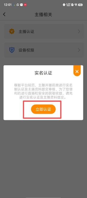 第四步:点击“主播认证”,找到页面上的“立即认证”。