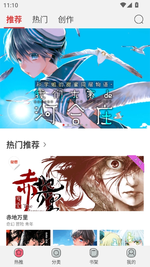 用户可以将喜欢的作品加入到书架中,方便用户之后继续阅读,并且在漫画更新后也会提醒用户,掌握心仪漫画的最新动态,帮助你轻松追漫,软件界面简洁干净,没有任何的广告。