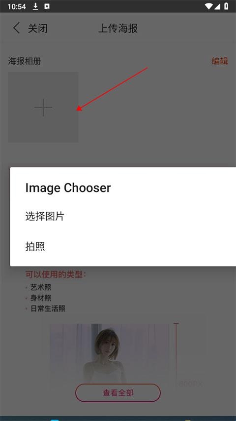 3、最后点击箭头处选择图片或者拍照上传。