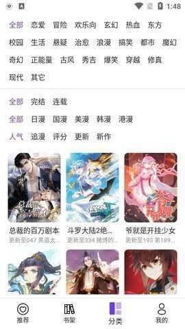 分类浏览:除了精选推荐外,软件还提供了多种分类浏览方式,用户可以按照自己的喜好选择不同类型的漫画进行阅读。