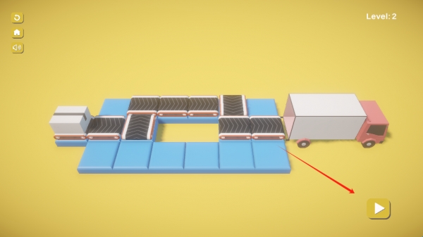 1、进入游戏后,玩家需要通过合理摆放传送带,将货物运输到货车上