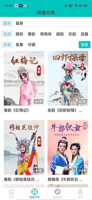 3、戏曲大全——用户可以根据喜欢的剧型进行寻找